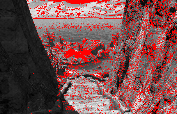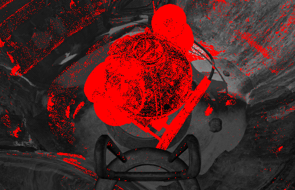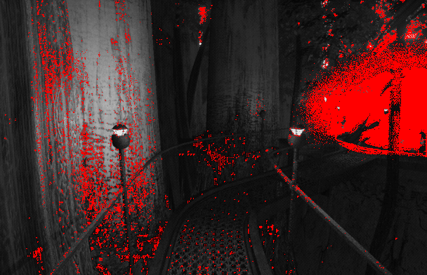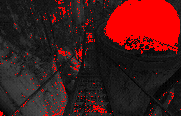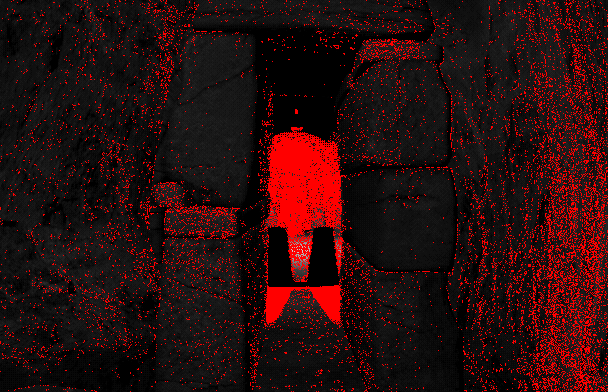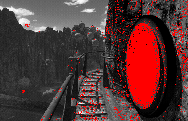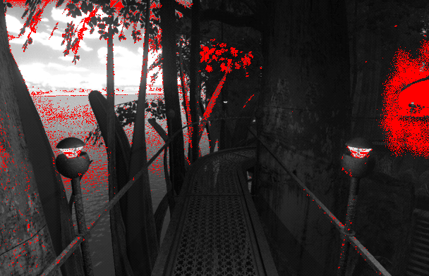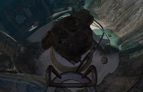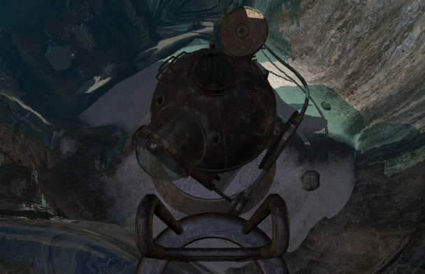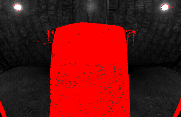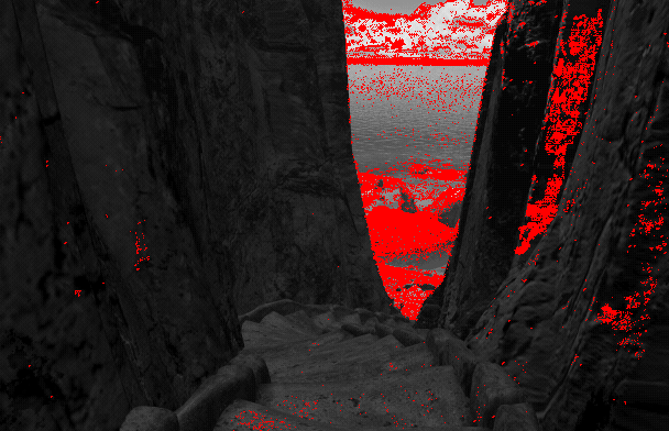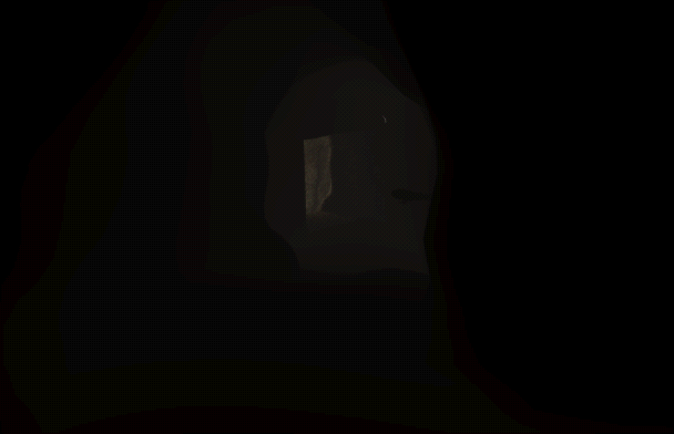 Inside the tunnels, differential comparison revealed a render that seems out of place. If you turn on exactly 3 of the lights in the tunnel, when you’re walking back towards the ocean, there is one render assigned to card J194 that’s actually a render from the perspective of J196. In the differentials, this looks like the tunnel changing shape between worldstates. In-game, this makes it seem like one of the steps towards the ocean darkens the lighting without moving forward at all. The incorrect render may be from earlier in development, as it has noticeably egregious banding on the dim/gray parts of the image, which isn’t a problem on the correct version visible from J196, or anywhere else in the tunnel. It’s likely card J194 should be completely black when 3 lights are on, as it’s barely lit (with a correct render) with 4 lights on.