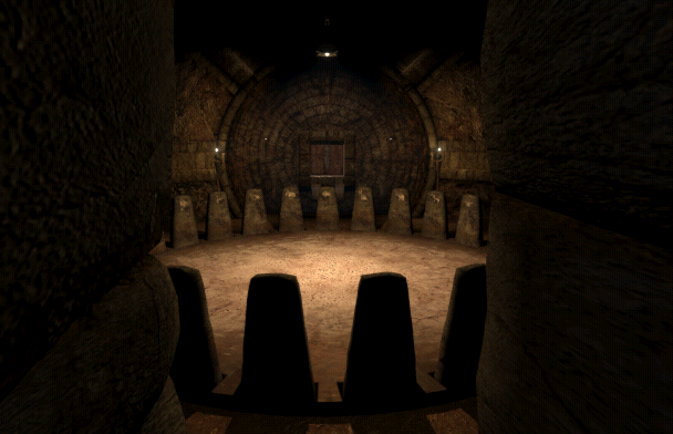 Each of the 25 totems in the Tay book room can be raised or lowered individually. When you’re standing in the center of the room, individual image patches are used to allow arbitrary totems to be shown in the downwards state, and renders with Tay unlocked are made with the correct totems already lowered. However, the zoomed-in views on almost all of the 25 totems have all of the totems in the same state as the totem you’re currently zoomed in on. (Exceptions: J217 and J225)