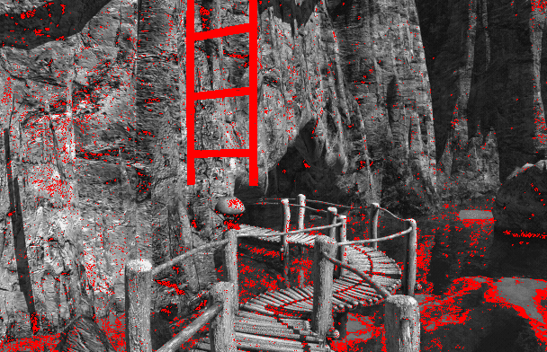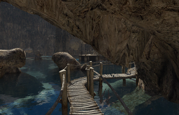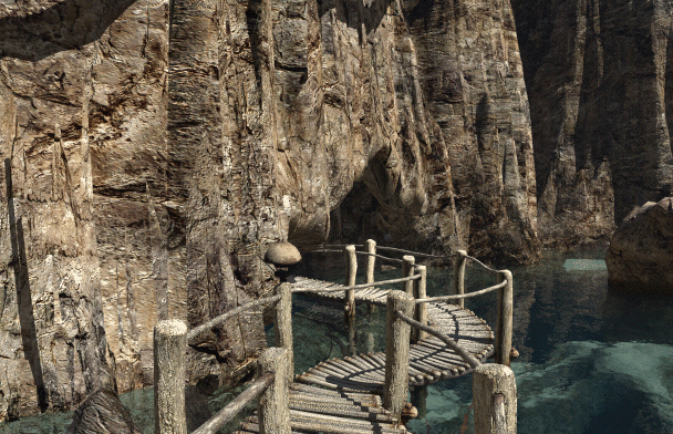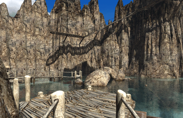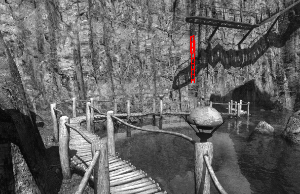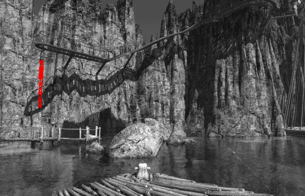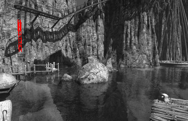 Finally, in card J459, a detached shadow probably belonging to the shortcut ladder is visible on the leftmost cliffside at all times.