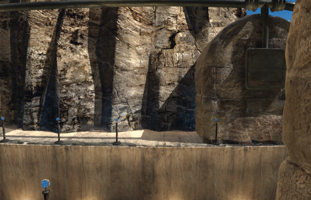In card J449, when the gallows shortcut ladder is still raised, submarine dock 2 will be completely missing when retracted (The extended dock is shown using a patch.) Furthermore, when dock 2 is visible in any worldstate, it becomes apparent that the submarine dock is on the wrong side of the walkway, a quirk also visible in J447.