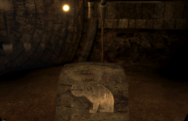 Each of the 25 totems in the Tay book room can be raised or lowered individually. When you’re standing in the center of the room, individual image patches are used to allow arbitrary totems to be shown in the downwards state, and renders with Tay unlocked are made with the correct totems already lowered. However, the zoomed-in views on almost all of the 25 totems have all of the totems in the same state as the totem you’re currently zoomed in on. (Exceptions: J217 and J225)