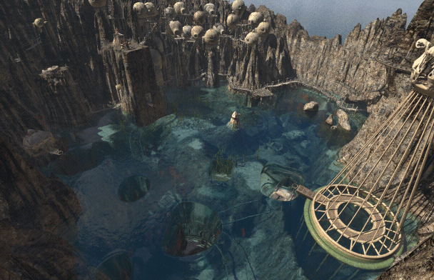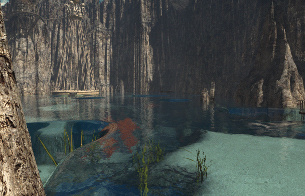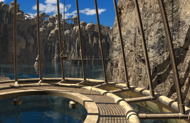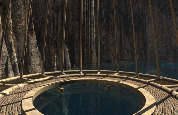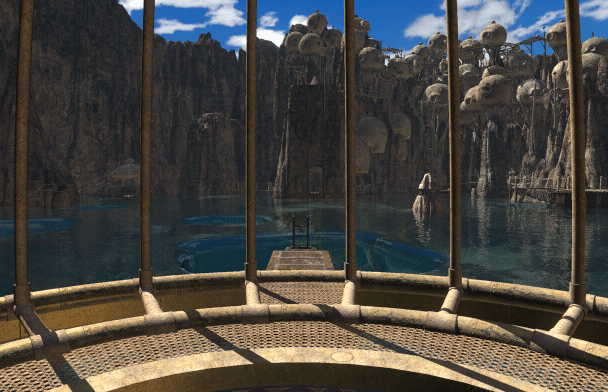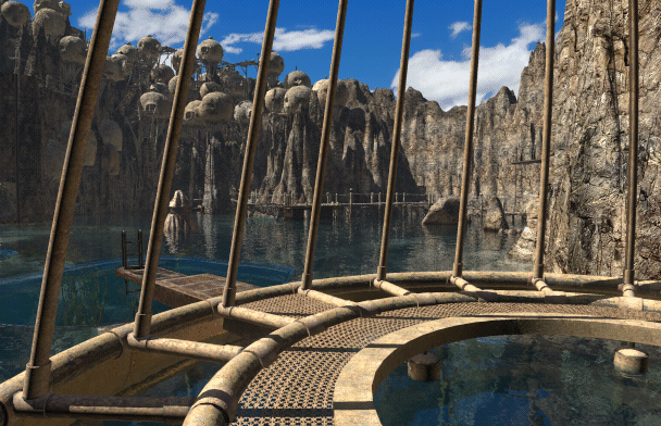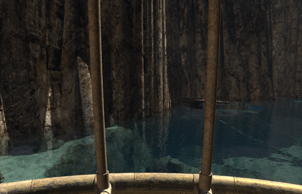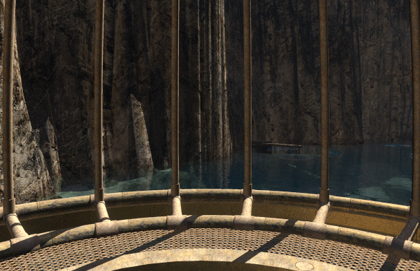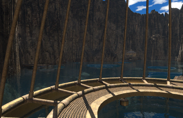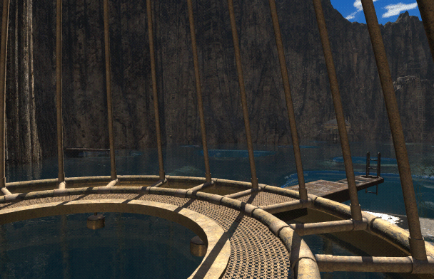 Every one of the remaining Jungle Island cells we will cover have one of two recurring anomalies, those being impossible-to-see states for dock 3 (the gallows) and dock 4 (the dock control room). The dock control room is impossible to leave without extending dock 4 first, but in most cases, dock 4 is extended by a patch, resulting in a great number of anomalies where the base render shows an impossible-to-see retracted dock 4, and the extended dock 4 patch would normally always be visible in-game. Similarly, there are a few places where dock 3 can be seen retracted while standing at the bottom of the wahrk gallows; since you can only reach the bottom of the gallows via submarine, these are also impossible to see in-game.