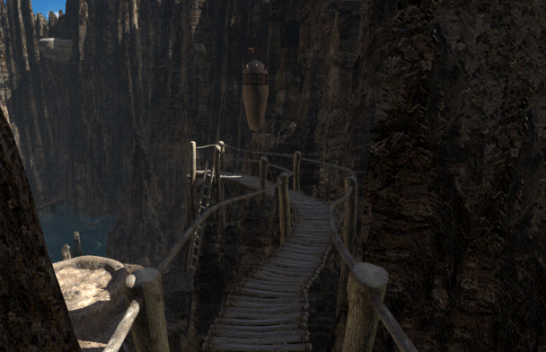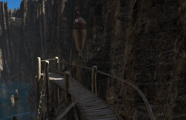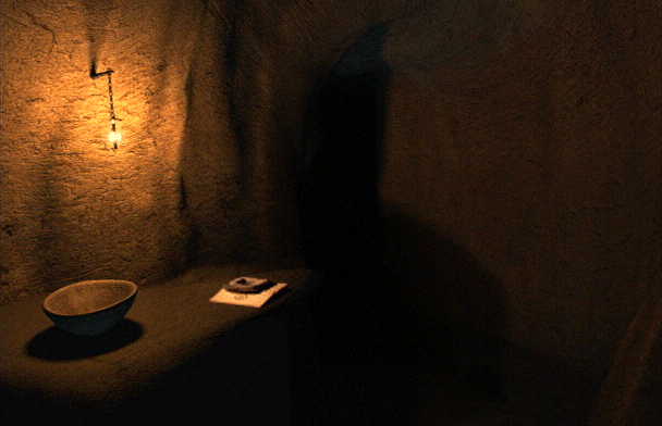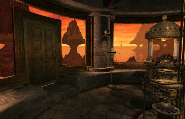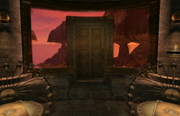 In cell O3, the door changes to match the Gehn FMVs. In addition, in O3, O5, and O6, the FoV of the background changes. Also, the books move, and some of the textures on the books themselves seem different. In addition, in O6, the chair looks different, and seems to have different shadows.