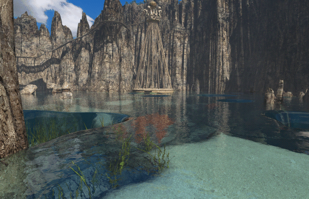 A number of patches are used in the rebel cave to show individual totems lowered (up until the point the puzzle is solved). However, none of the reflections in the water are altered by these patches.