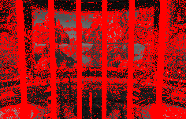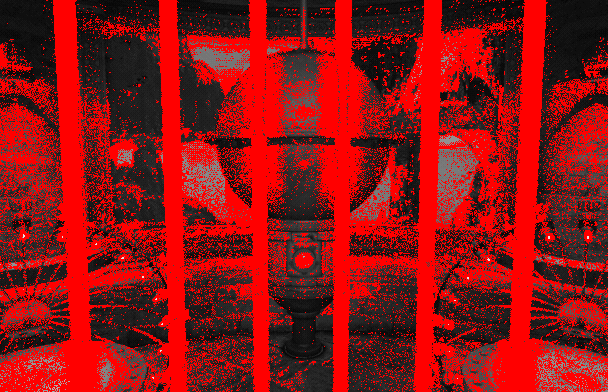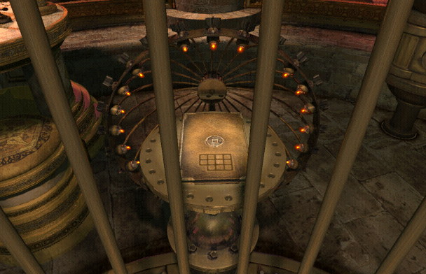 In many cells, the lights on the book pedestals move when the bars move. Some of the lights aren't properly occluded by the bars. Also, the floor in the center sometimes moves a little bit.