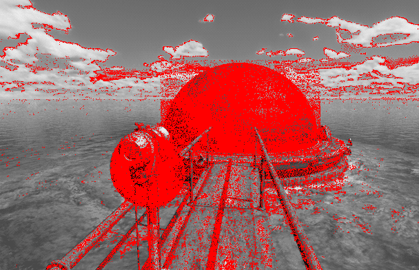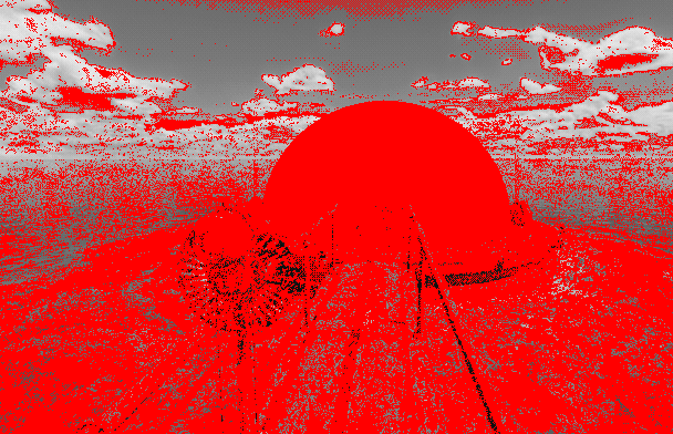 In P41, the viewfinder color changes again, though less egregiously; this seems to prove that the color changes in the last anomaly were purely differences in the available colors. Also, a dark line appears along the horizon.
